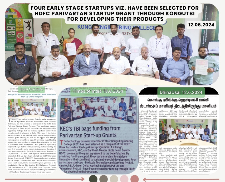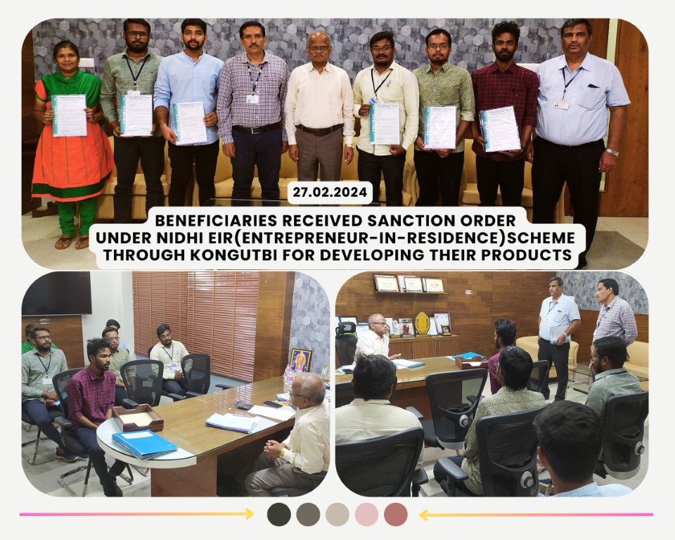Kongu TBI Sanctioned Rs.46.75 lakhs of funding assistance to Five Innovators on 11 May 2022 | |